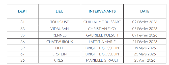 - les jeudis 12 février, 12 mars et 16 avril 2026 : cycle de formation "ÊTRE DIFFÉRENT"